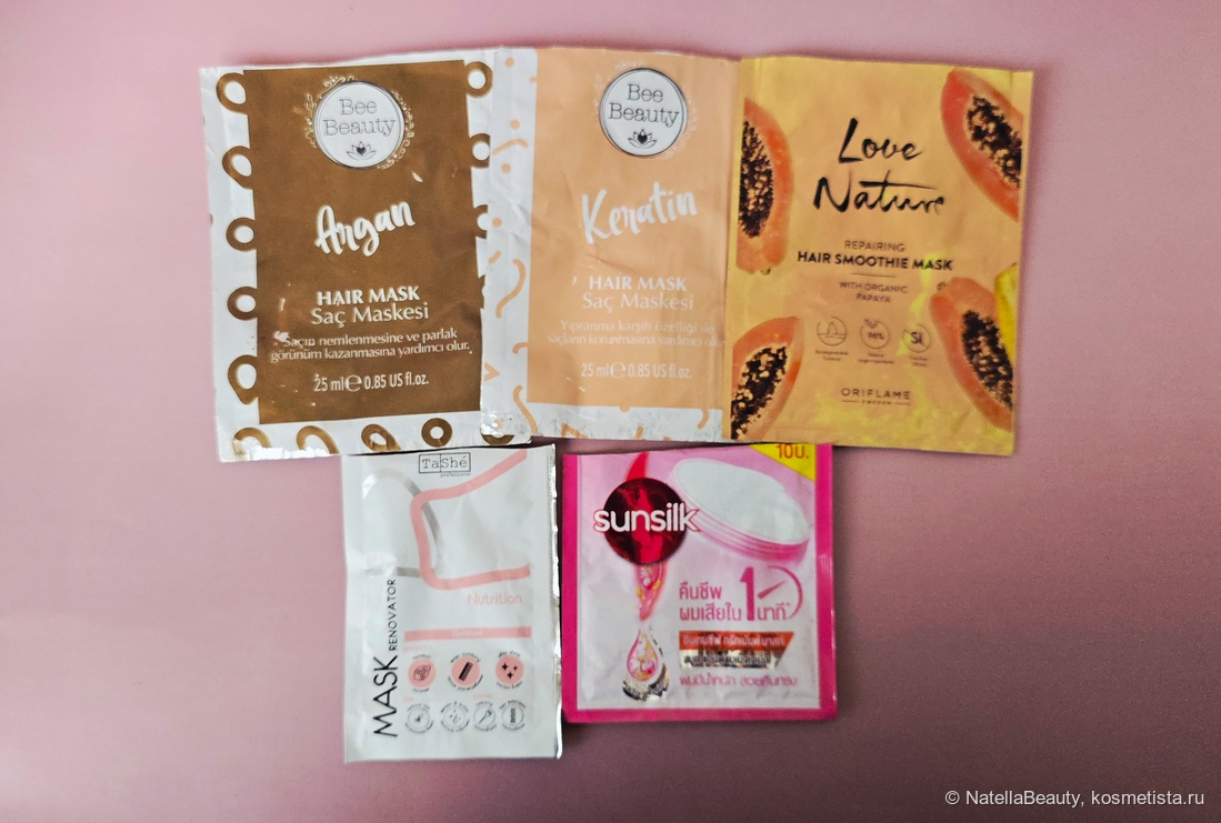 Посмотрела на свою полочку и поняла, что скопилось много сашеток с масками для волос, решила их и попробовать. Поэтому в этот раз без бальзамов.