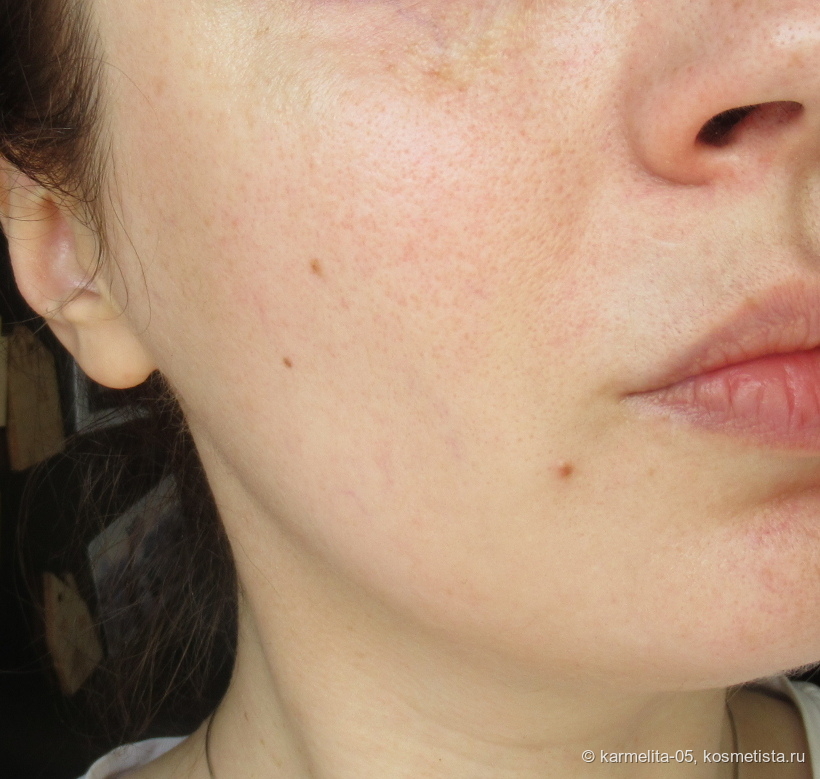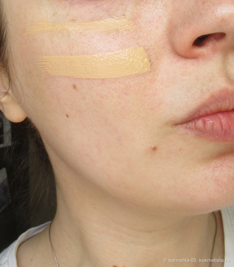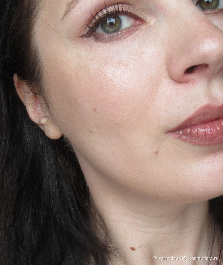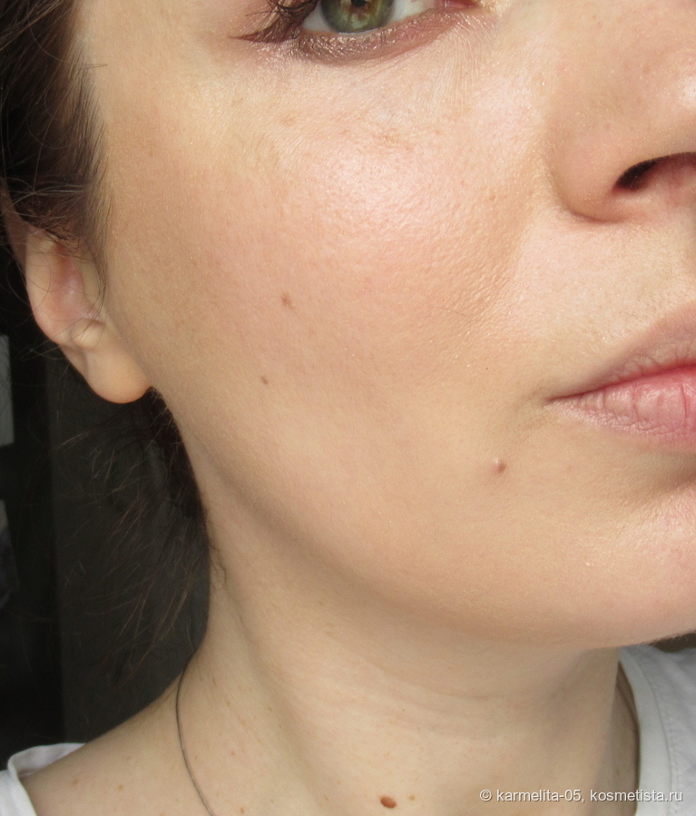 Покрытие, насколько можно судить по фото, наитончайшее, кожа с ним очень выигрышно смотрится, но минус один — перекрытие явных дефектов (постакне, пигментация и тд) очень слабая…