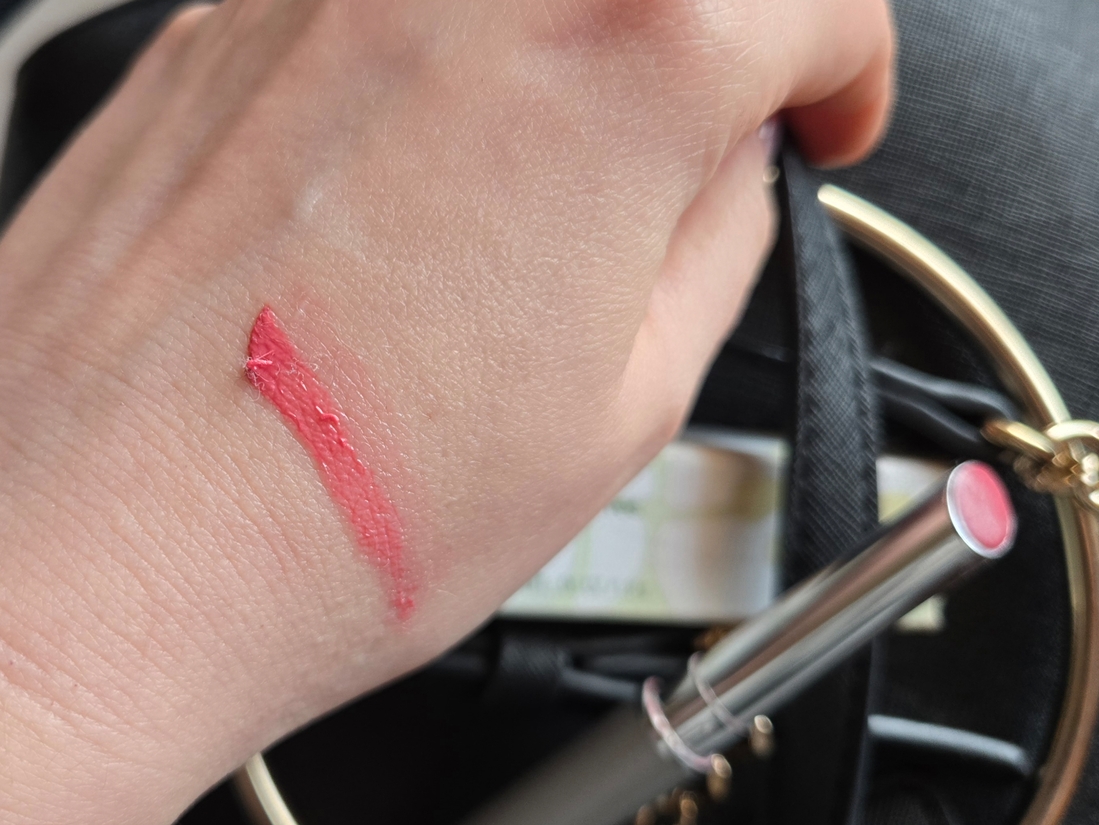 Текстура, как и аромат, тоже вазелиновая. Пигмента кажется, что много, но это потому что эта «почти помада» также почти наносится: если её выдвинуть побольше и слегка переусерствовать с нажаетием, это всё это окажется у вас на губах. Хотя зимой, когда она немного подмерзает в сумке, она наносится едва-едва.