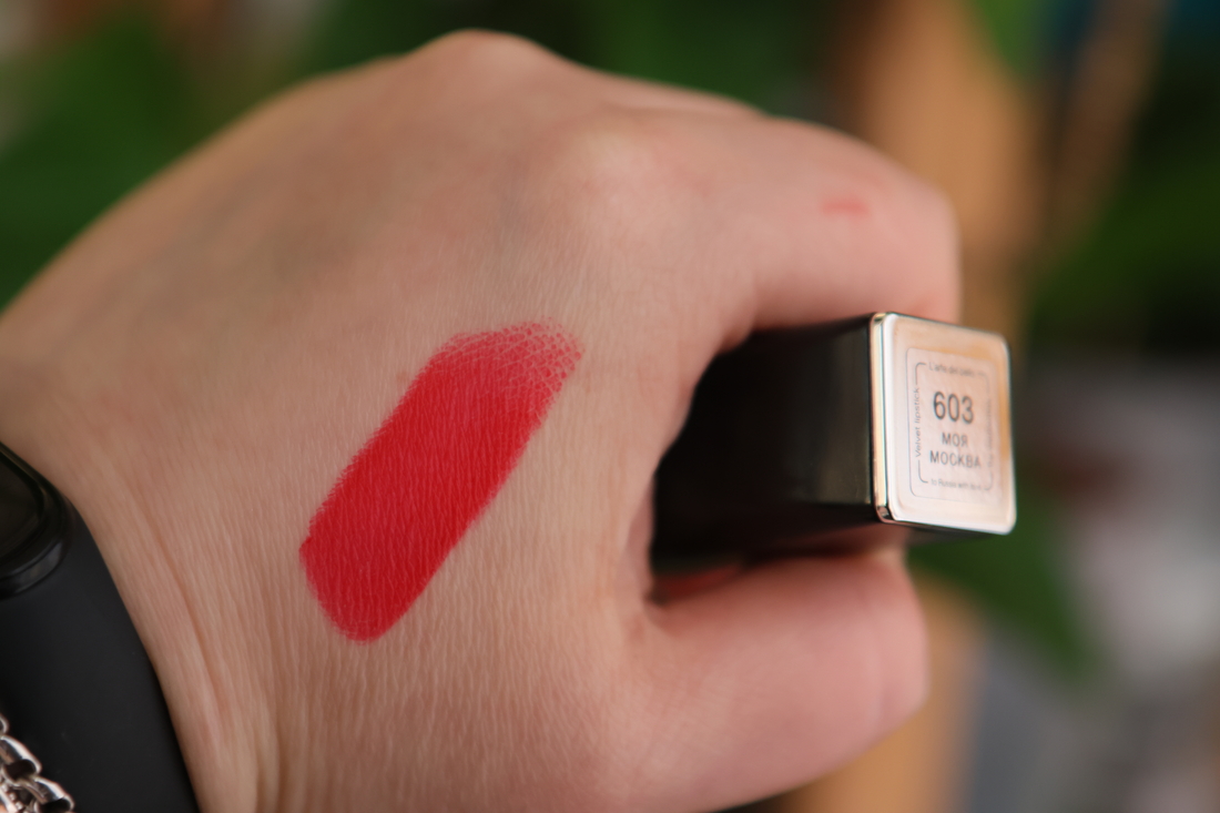 Придраться по существу к ней особо не в чем — носится и ложится хорошо, не сушит, не убегает. Но вот удовольствия не приносит столько, сколько хотелось бы. У меня есть помады лучше. Но! Для матовой помады она ведет себя очень хорошо. И этим ценна.