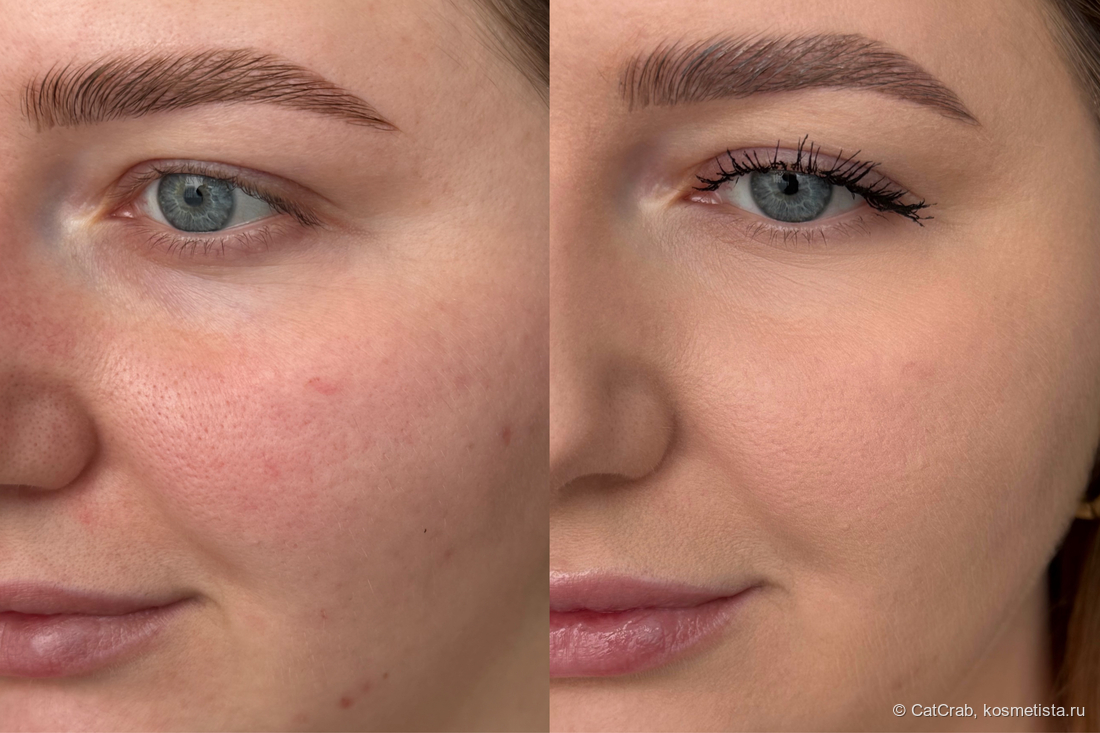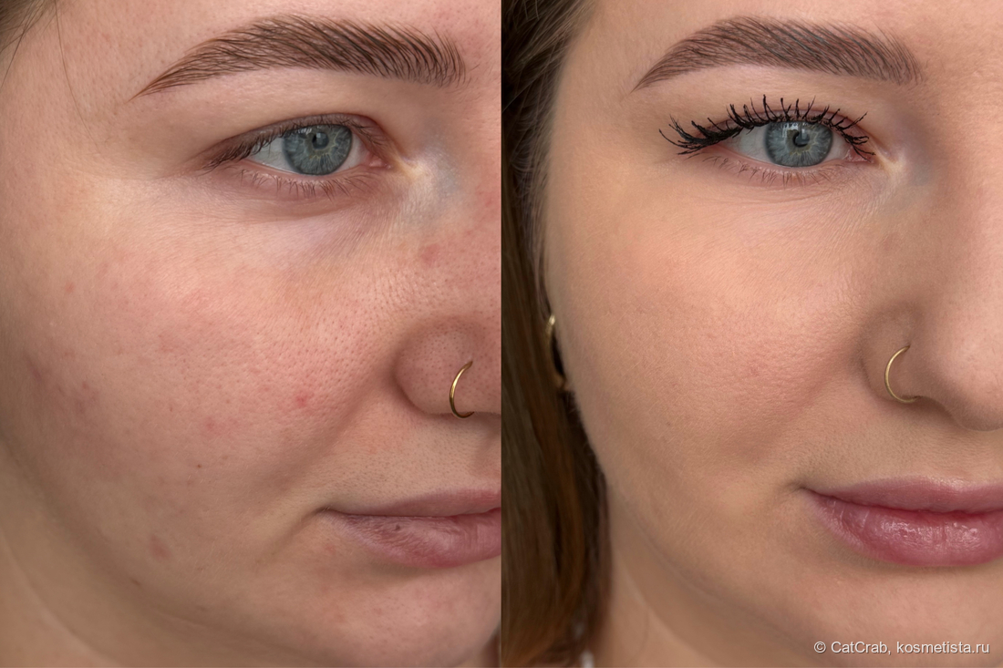 Наносится тон великолепно, не требует никаких танцев с бубном, не залипает, слишком быстро не схватывается, при нанесении влажным спонжем ложится отменно.