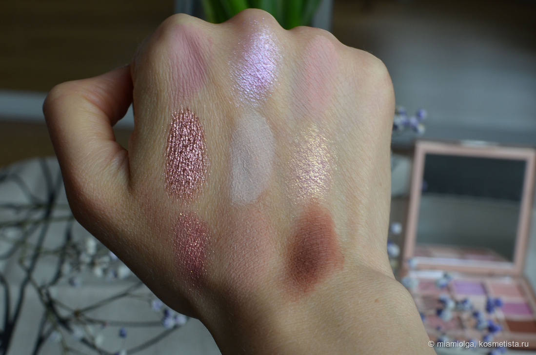 В палитре 9 оттенков: 5 матовых и 4 металлика. Все прекрасно пигментированы.