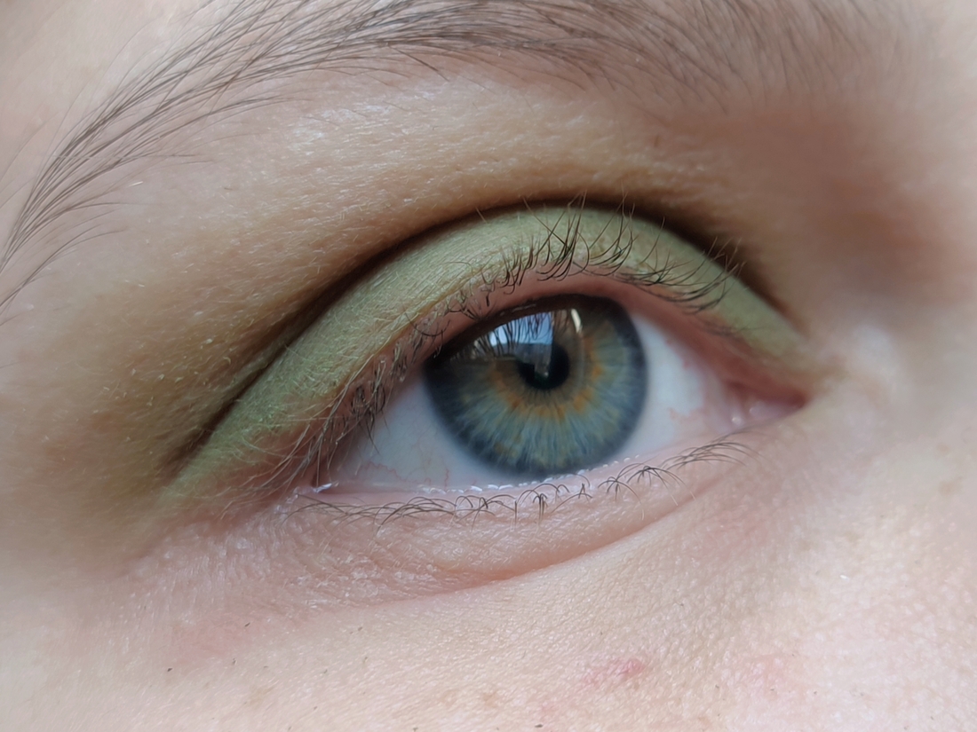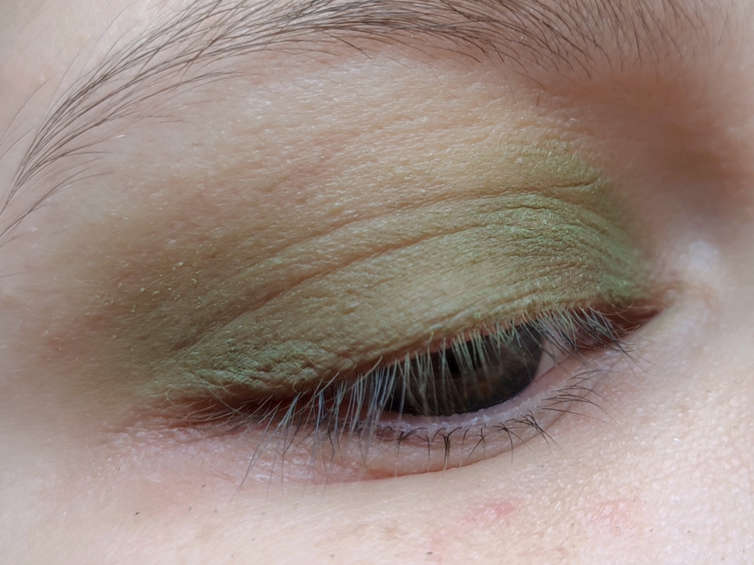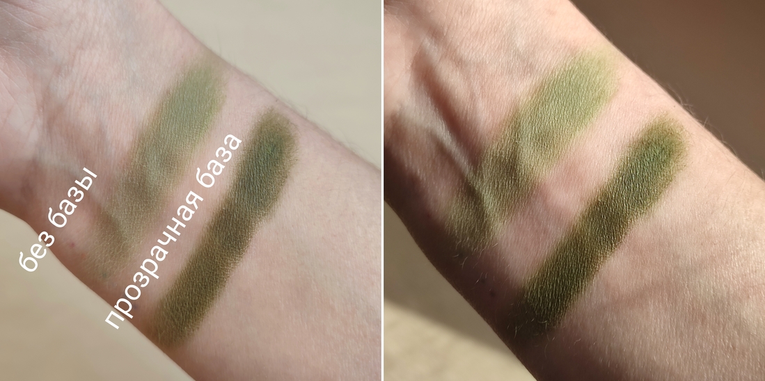 Что без базы, что с базой — пятнит. И если оно залипло, оно там навсегда. И чем больше его кисточкой растираешь, в надежде что пятно все-таки растушуется, тем темнее и выразительнее цвет показывает, что он не свалит. На все веко не годится, а так хотелось… Хорошо работает только как акцент в макияже. Дружит с другими тенями.