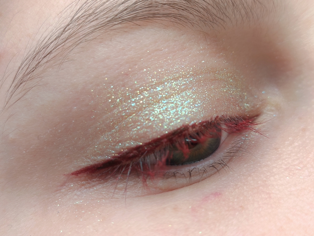 При нанесении на веко осыпаются. Это их единственный недостаток. В носке показали себя отлично: не мигрировали ни под глаза, ни по лицу, не скатывались. Достойно просверкали до конца дня.