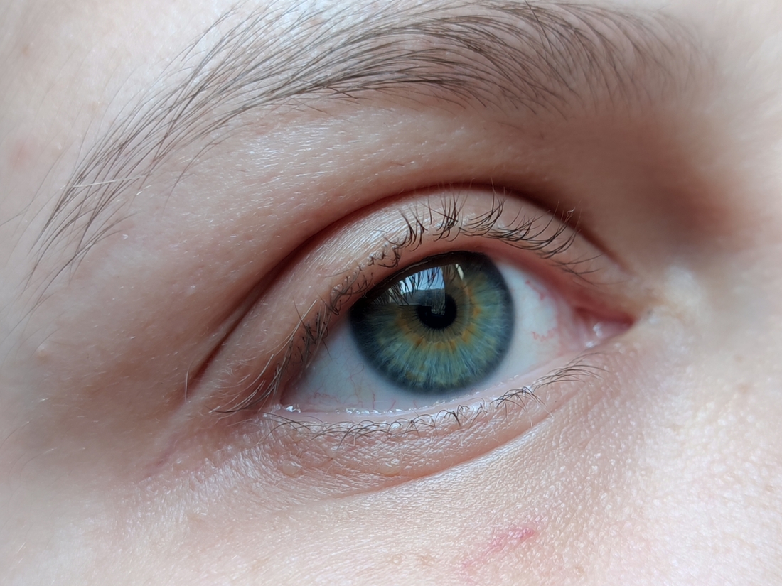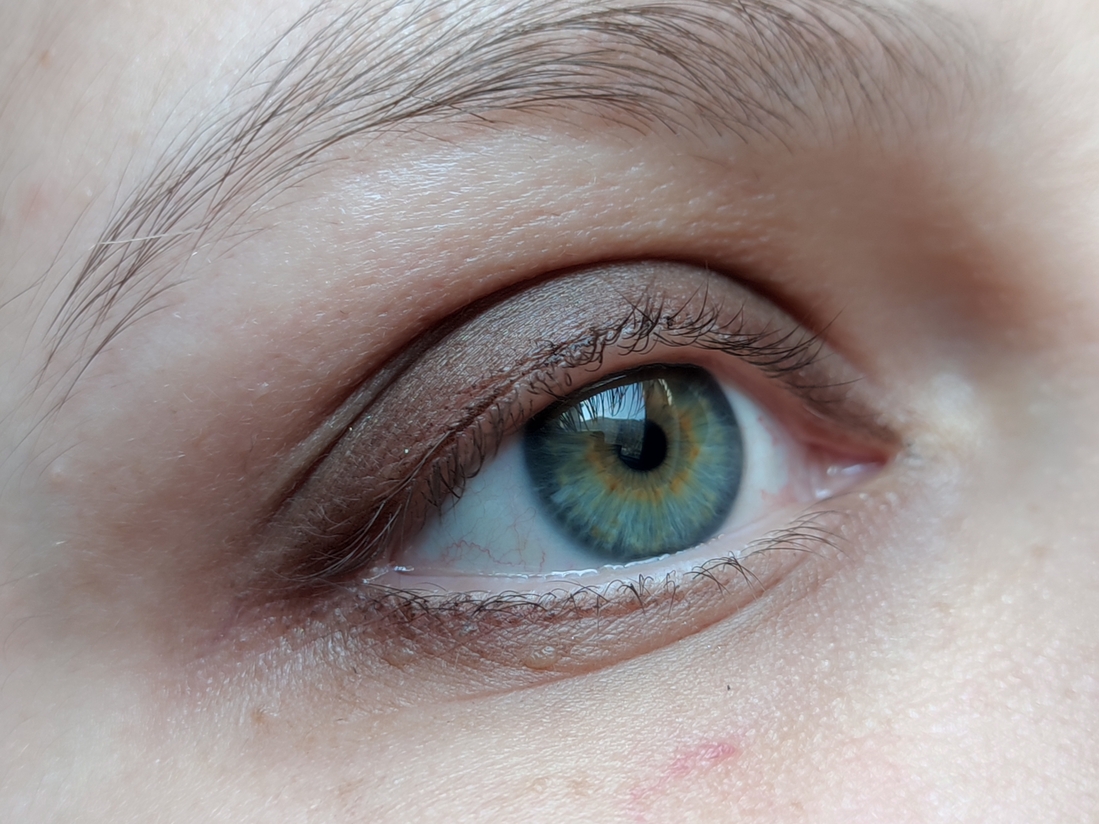 Глаз ню. Только уход и немного прозрачной пудры, чтобы убрать излишнюю жирность в складке века. Остальные части века, по иронии, у меня излишне сухие. Впереди 10 этапов, я пронумеровала.