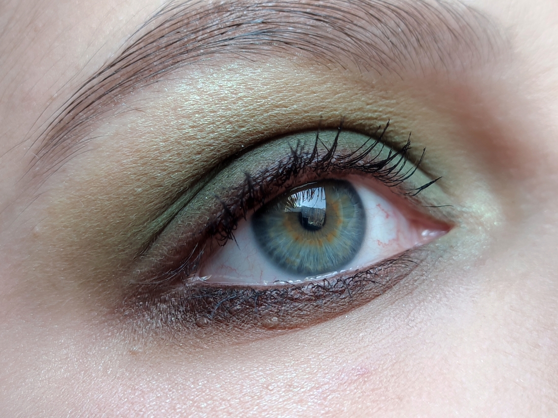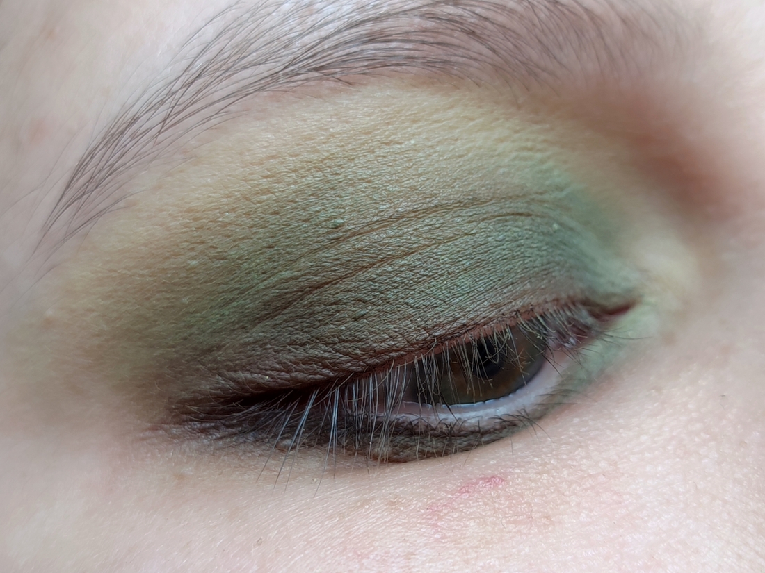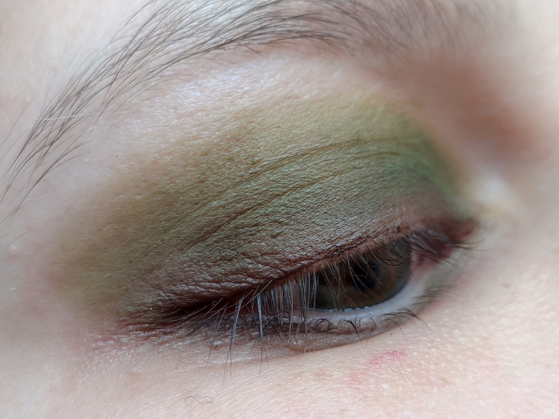 Говорят, в 8 утра в кофейнях большие очереди, где, переминаясь с ноги на ногу и тыкая в телефон, каждый тупит в меру своей сообразительности. Я точно не знаю, мне повезло просыпаться в 10 утра, хотя у кассы мычу что-то невнятное про «средний без сахара», как если бы вставала в 8. В общем, вдохновение для сегодняшнего макияжа находится точно в кофейне. У меня сегодня матча-латте. Знаю, его готовят без добавления кофе, но я добавила — потому что зелёный хорошо сочетается с коричневым.