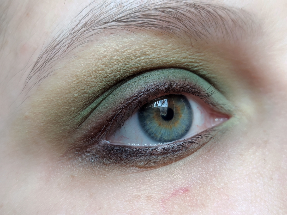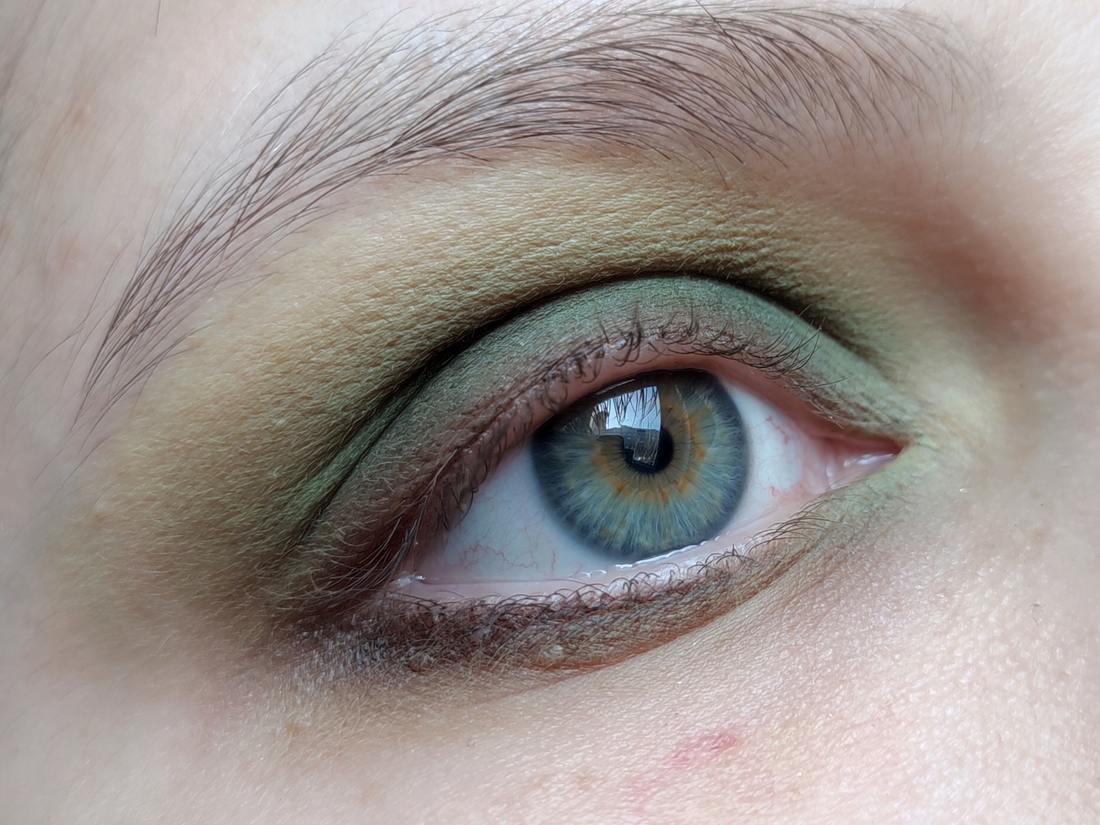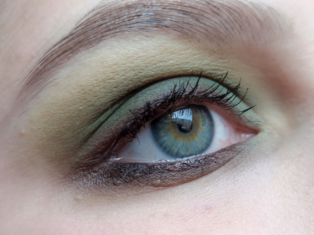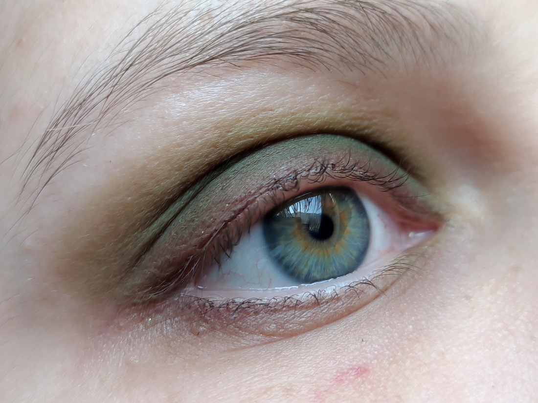 Говорят, в 8 утра в кофейнях большие очереди, где, переминаясь с ноги на ногу и тыкая в телефон, каждый тупит в меру своей сообразительности. Я точно не знаю, мне повезло просыпаться в 10 утра, хотя у кассы мычу что-то невнятное про «средний без сахара», как если бы вставала в 8. В общем, вдохновение для сегодняшнего макияжа находится точно в кофейне. У меня сегодня матча-латте. Знаю, его готовят без добавления кофе, но я добавила — потому что зелёный хорошо сочетается с коричневым.