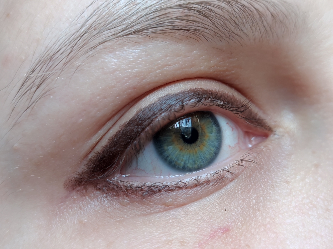 1. Шаг первый. Беру палетку пигментов Influence Beauty и смешиваю черный с коричневым до нужной мне темноты коричневого, и обрисовываю глаз. Тут можно обойтись подходящим коричневым карандашом — от Shu, кстати, отлично подходит. Но у меня проджэкт пэн, и мне надо.