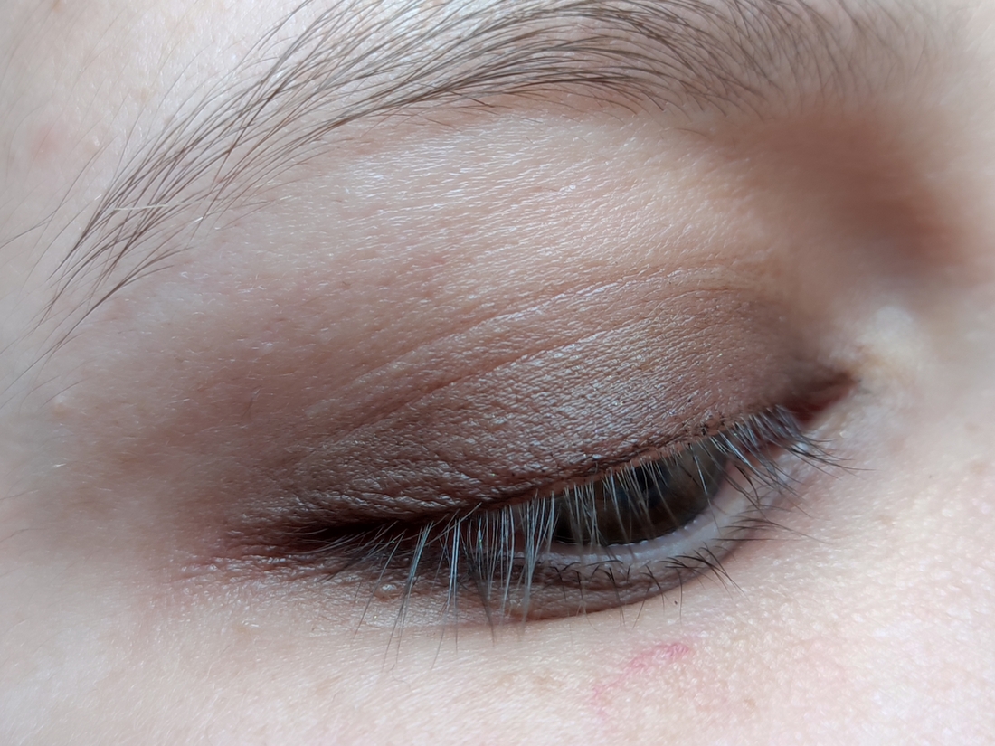 3. Теперь беру однушку Arive Makeup в оттенке М. Наношу ее на все веко, чуть не доходя до ресничного края, и мМолюсь, чтобы она нанеслась равномерно.