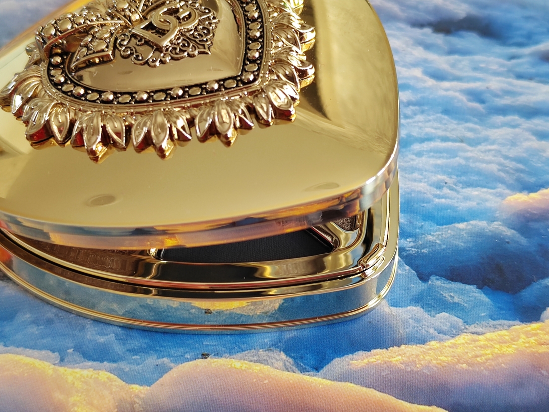 Посмотрите, ну какая же это красота — всё позолоченое, в вензелях, и форма в виде сердца — в руках держать так приятно! И да, я люблю такое оформление, настроение даже улучшается!))