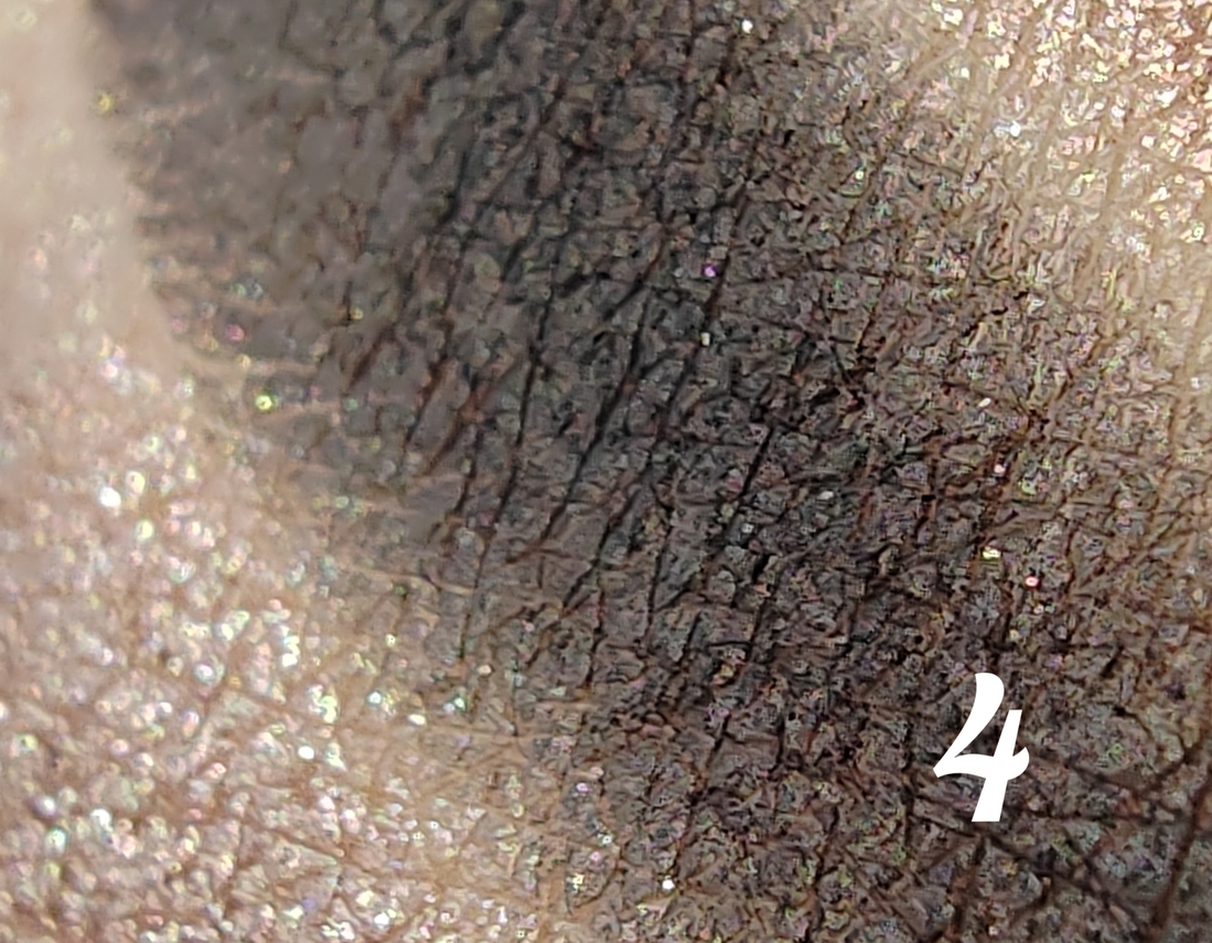Матовые (1 и 4) при работе с кистью не пылят, пигментация насыщенная.