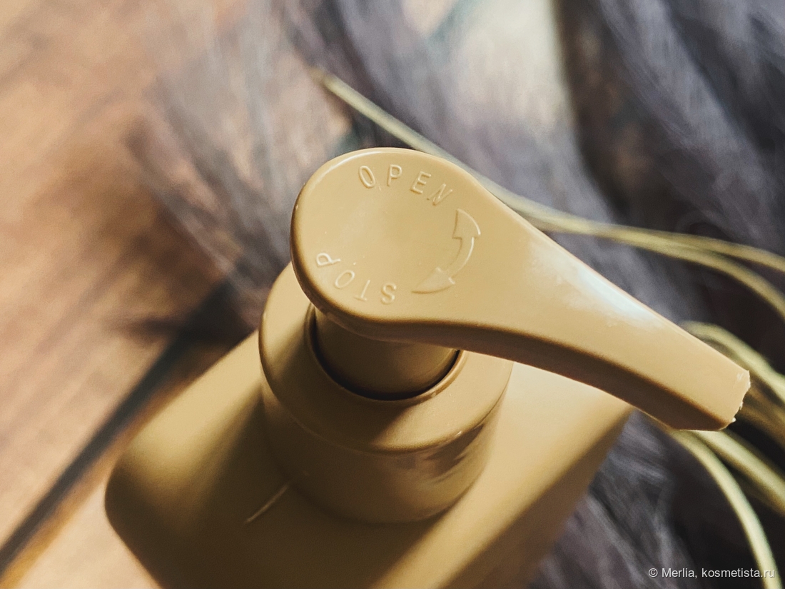 Оснащён дозатором с защитной скобой-фиксатором от вскрытия. Также дозатор имеет клапан блокировки нажатия.