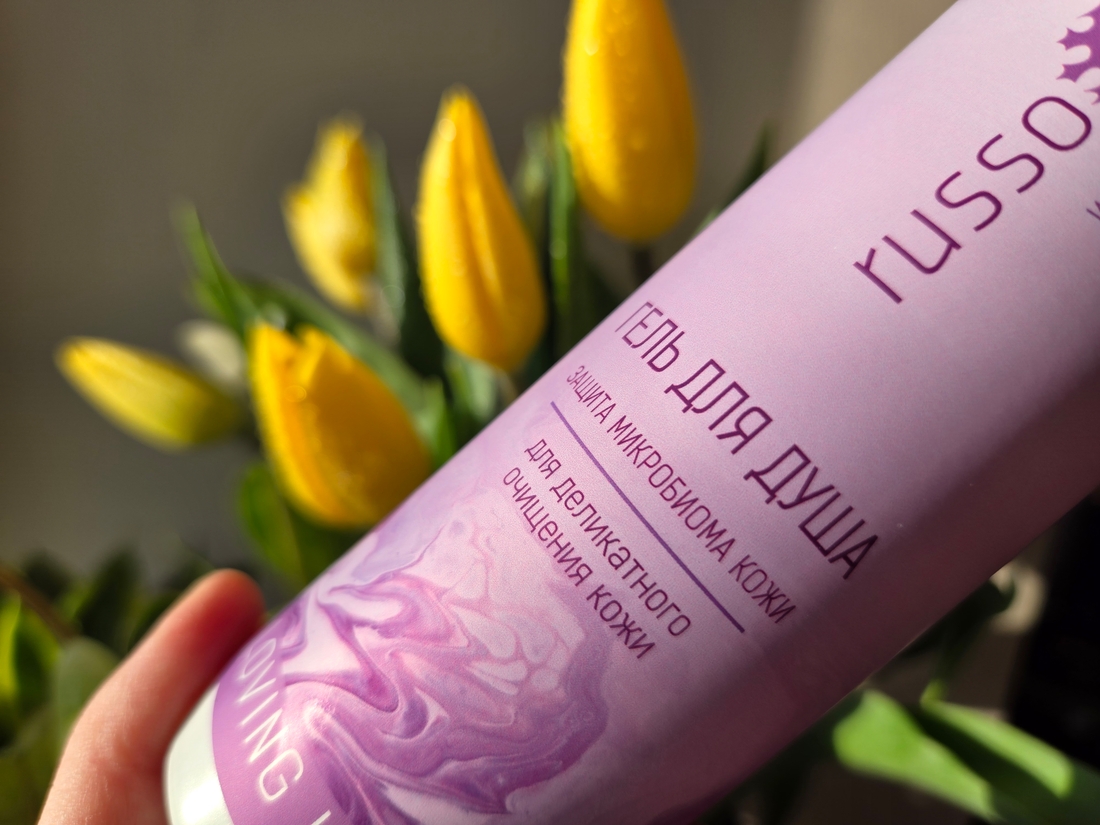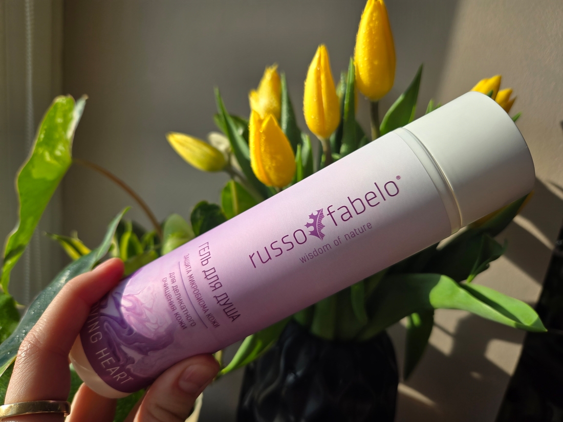Второй продукт, который рассмотрим, будет Гель для душа Защита микробиома кожи Russo Fabelo, для деликатного очищения.