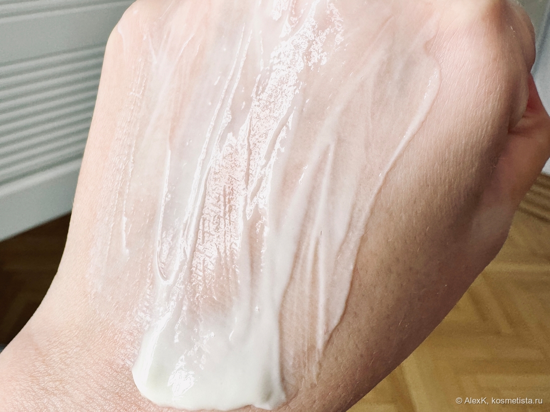 Текстура. Приятная, однородная, сливочная. Не очень густая. Скорее, лосьон, чем крем.
