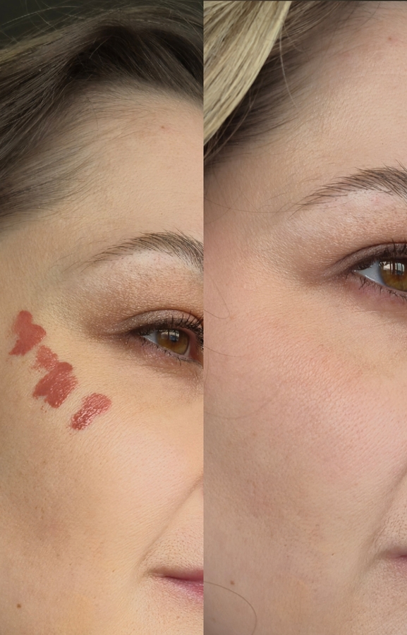 Меня удивила стойкость- я всегда закрепляю кремовые текстуры сухими, поэтому не могу зафиксировать исчезновение одного конкретного продукта. А тут для поста специально не закрепляла, то есть целый день проносила тональник+румяна+пудра. К вечеру они все же читались на лице: