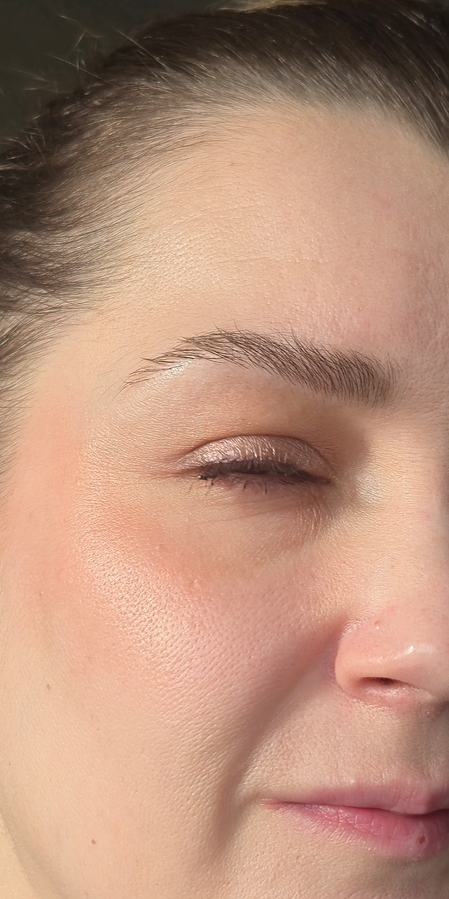 Вот оно, деликатное подсвечивание. И здесь специально для фото я нанесла больше, а в жизни они видны слегка- ювелирно точно для того, чтобы и румянец присутствовал, и была неочевидность использования косметики.