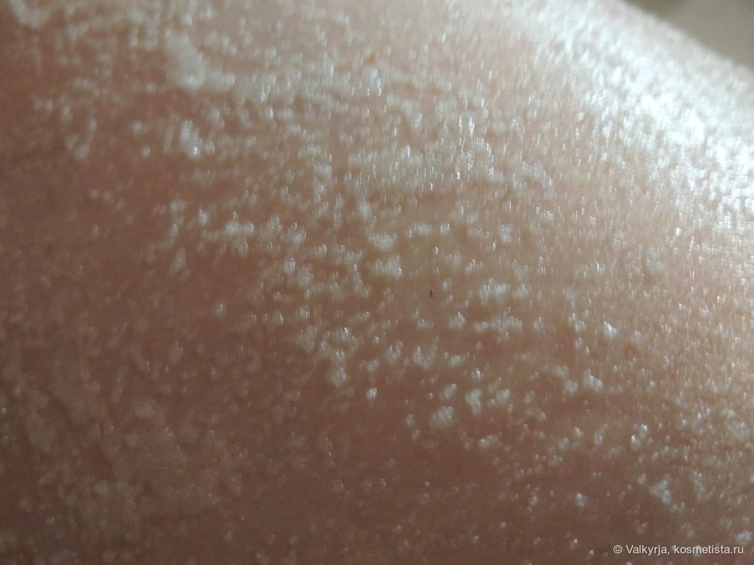 Скраб хорошо отшелушивает и полирует кожу, по жесткости — средний, по эффекту — больше смягчающий и полирующий, чем антицеллюлитный. Кожу не царапается, сцепление с кожей превосходное. Несмотря на большое количество масел, после смывания скраба не образуется гидрофобной маслянистой пленки.