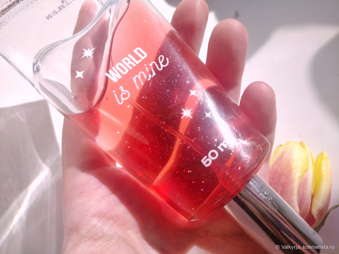 Ожидание/реальность не совпали. С парфюмерией этого бренда в целом отношения у меня натянутые, так как достойных ароматов у них — по пальцам пересчитать. World is mine сразы раскрывается свежей вишней, с характерной для угоды кислинкой. Был бы моноаромат — я бы даже не так расстроилась, но вишня молниеносно слетает, и раскрывается приторное нечто в виде дуэта кондитерской ванили и сахарной пудры. Ваниль так и сидит как прибитая до конца носки аромата, а вот вишня едва пробивается и лишь в прохладную погоду ароматом вишневого варенья с косточкой. Очень легкомысленный аромат, при этом прилипчивый своей приторностью. Весной, когда за окном солнце и столбик термометра превышает +10 градусов — уже слишком сладко. Только на раннюю весну, и то, мне эта чрезмерная сладость быстро надоедает.