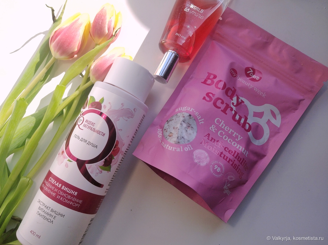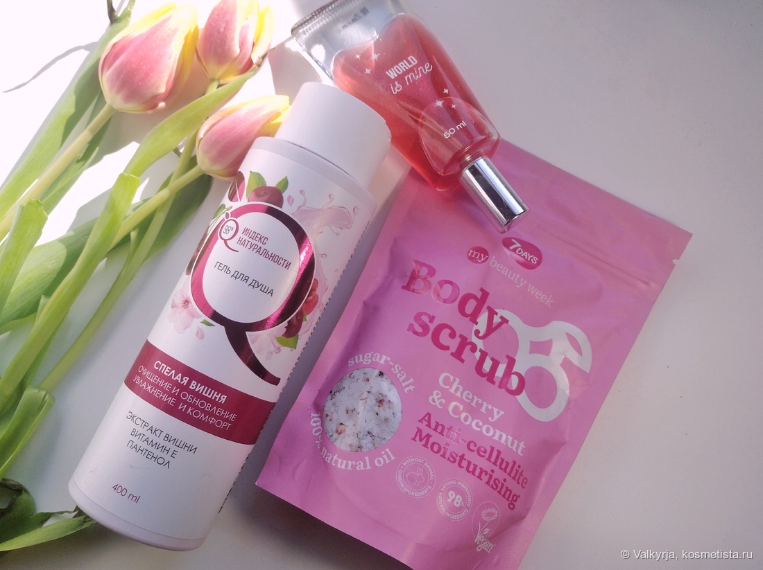 История с ароматами у меня какая-то сезонная, но вне зависимости от сезонов за окном. Прошлый год был какой-то тотальной мангоманией, этой зимой потянуло на вишню, хотя эту ягоду я воспринимала раньше только в гастрономическом плане. Сегодня хочу поделиться с Вами впечатлениями о трёх бюджетных продуктах с ароматом этой июньской ягоды.