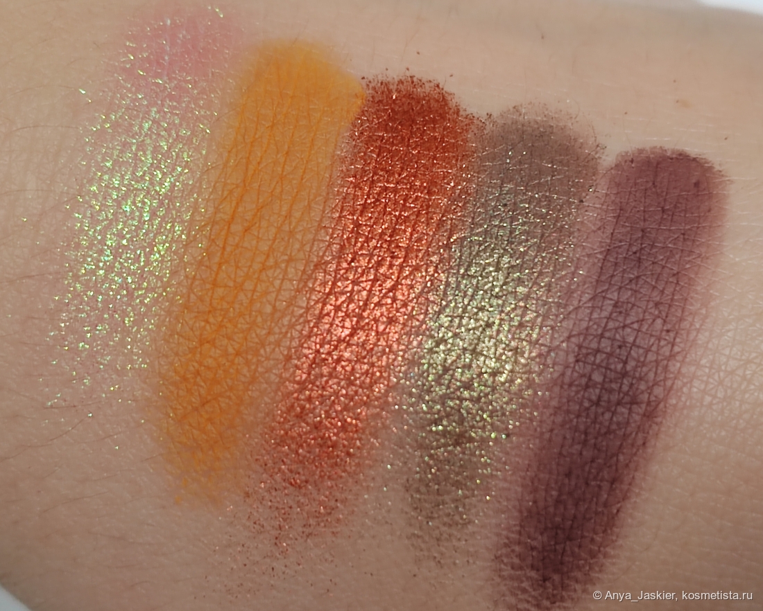 Мне очень нравится эта палитра, как по цветам, так и по текстурам. Все оттенки пигментированные, прекрасно лежат на коже, почти неприхотливые к методу нанесения (я предпочитаю пальцем краситься, но и кистями работать с ними можно). Сыпятся тоже дружно, но не критично (я бы не сказала, что с Лисичкой нужно сначала красить глаза, затем лицо). На базе Wet'n'Wild держатся по 12-14 часов (кроме мультихрома — он, зараза, даже на базе в два слоя умудряется в складку убегать через 6-8 часов), глиттерный праймер им не нужен — и так липнут. Не тускнеют, раздражения не вызывают, блесточные кожу не царапают. Когда палетка только приехала ко мне, мультихром был во всех моих макияжах, сейчас чуть успокоилась)) Я уже была готова рекомендовала палетку только из-за него, но и другие оттенки весьма и весьма достойны. В Wulfa я вижу гораздо большую стабильность и ориентированность на пользователя, чем в Liana. Шикарная, короче! Го уже мейки покажу :D