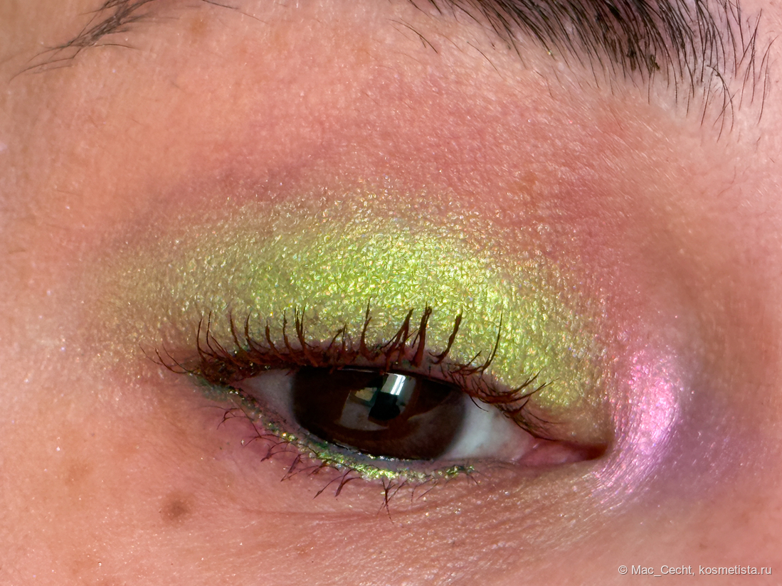 Оттенок послушный — набирается любыми кистями, не осыпается при нанесении, нормально носится. Да, не самый безумный сиятор, даже можно сказать, что вообще не сиятор, но красив!