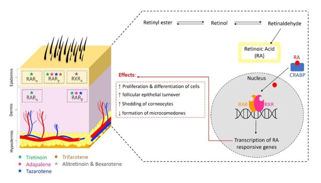 Если по простому, то это рецепторы, которые находятся в ядрах наших клеток (фибробластах и базальных кератиноцитах) и обладают чувствительностью к ретиноевой кислоте.