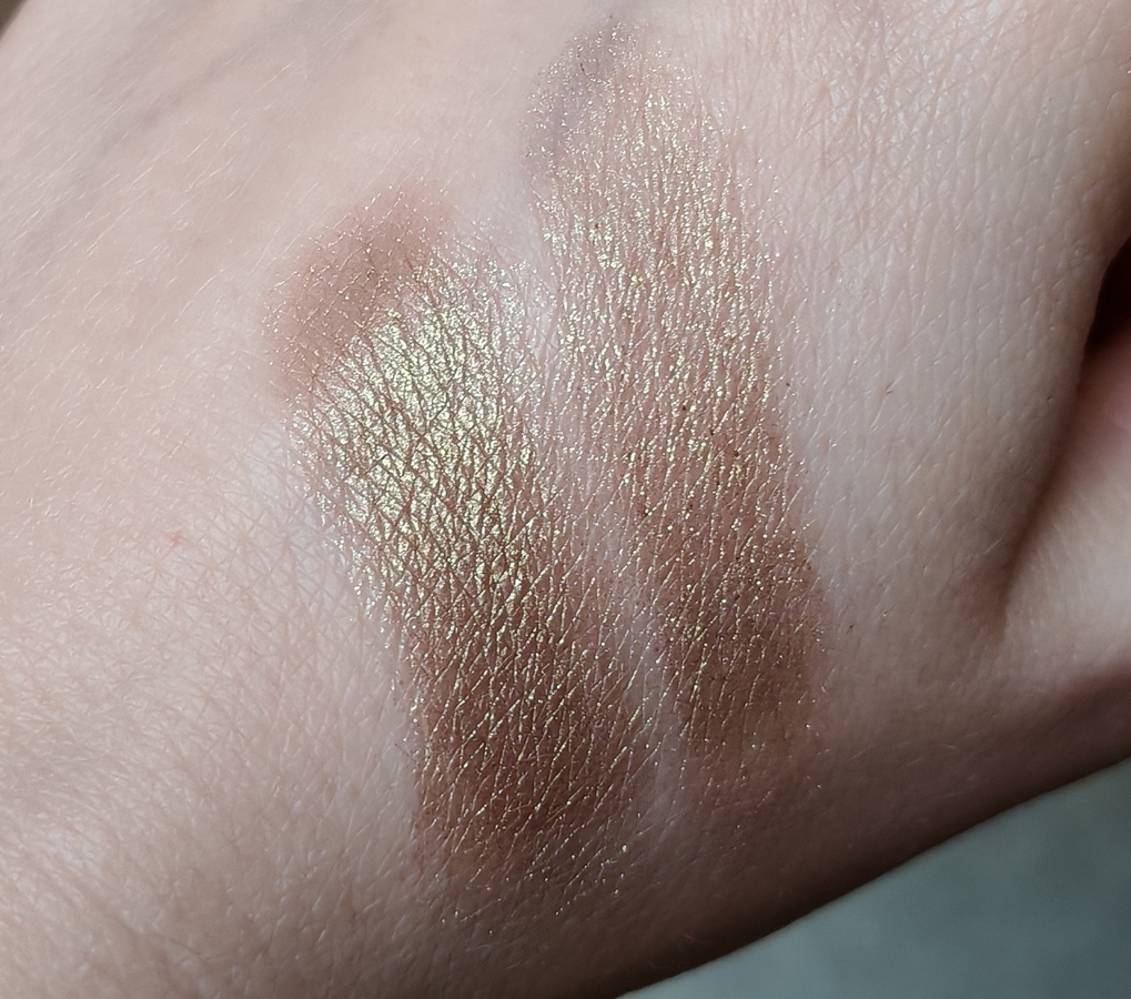У меня другой оттенок. И это те самые тени, которые дико катаются даже на моих совершенно беспроблемных в этом плане веках, хотя и красивые, этого не отнять