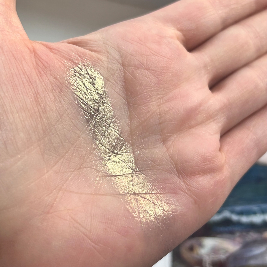 Оттенок очень сложный, но красивый, мне напоминает потускневшее золото на дне морском.