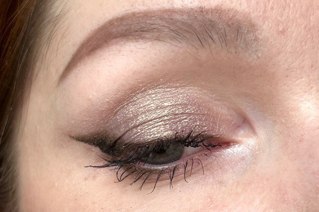 Нанесение. Эти тени не самые простые в работе, если нанести на подвижное веко и попытаться чуть подтушевать границы, получится грязь. Лучше всего выстроить рамочку матовыми тенями и этот оттенок наносить на подвижное веко, растягивая, чтобы лег тонко. При нанесении осыпается, поэтому либо наношу на лицо без тона, чтобы потом стереть осыпашки мицелляркой, либо под глаза наклеить тканевые патчи.