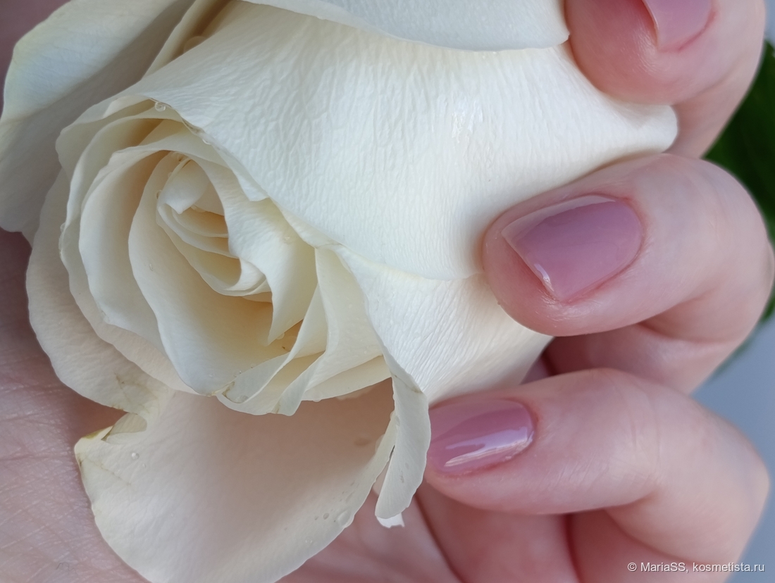 Оттенок этого лака заявлен как dusty rose (пыльная роза), мне почему-то видится цвет какао с молоком с лёгкой розовинкой. Лак очень прозрачный, ногтевая пластина перекрывается только после нанесения четвёртого слоя.