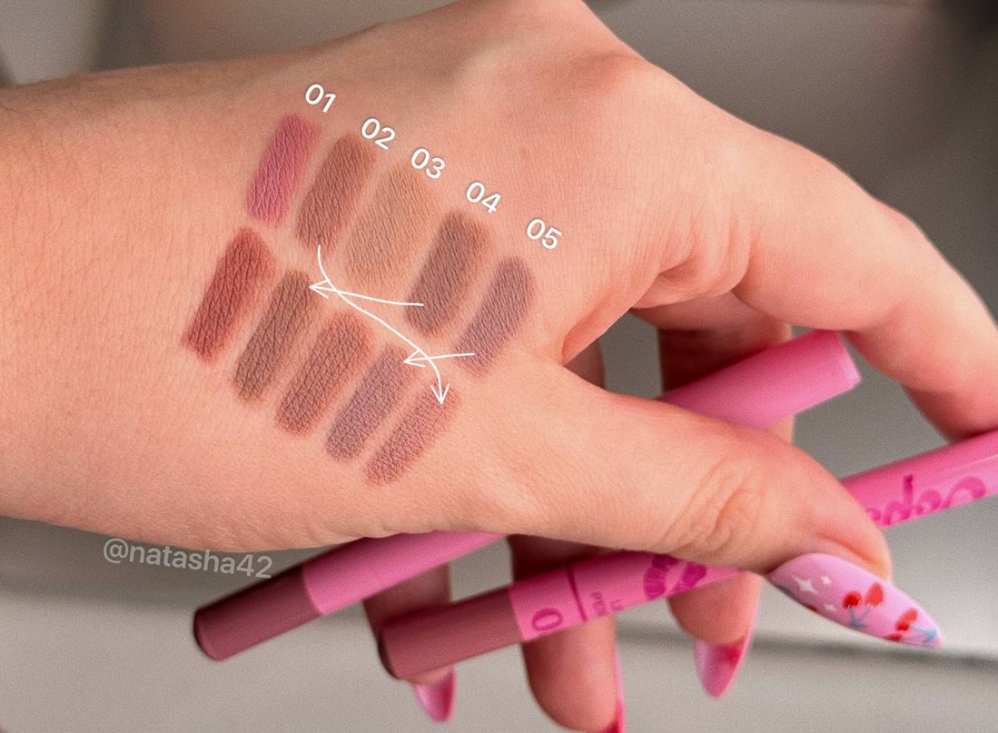 Раньше это была лимитированная коллекция Beauty Bomb Romcore, но со временем бренд выпустил эти карандаши в постоянную коллекцию. Очень полюбился всем этот продукт. Дизайн менять не стали. Там только поменяли нумерацию некоторых оттенков.