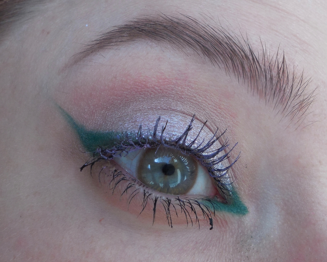 Однако душа всё равно просила лаванды, так что мешала всё, что в доме было. Здесь и тушь белая и аквалайнеры, и тени. Короче, такая мешанина, что и смысла нет подробно расписывать — хотел бы, второй раз не повторишь.