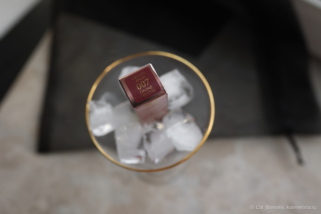 И когда у меня закончился ежевично-винный бальзам Dior Addict Lip Glow, я решила не повторять покупку, а взять что-то новенькое в этом сегменте и цвете. А вспоминая восхищение постами в рамках недавно прошедшего на косметисте винного флешмоба, выбрала оттеночный бальзам для губ ESTEE LAUDER Pure Color Envy Sculpting Lip Balm в оттенке 007 Divine Crystal.