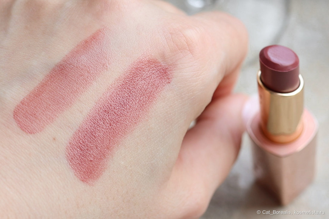 Разница между оттенком в стике и тем, что будет на губах, конечно, колоссальная, но не забываем, что это оттеночный бальзам и он не должен отдавать пигмент на все 100%.