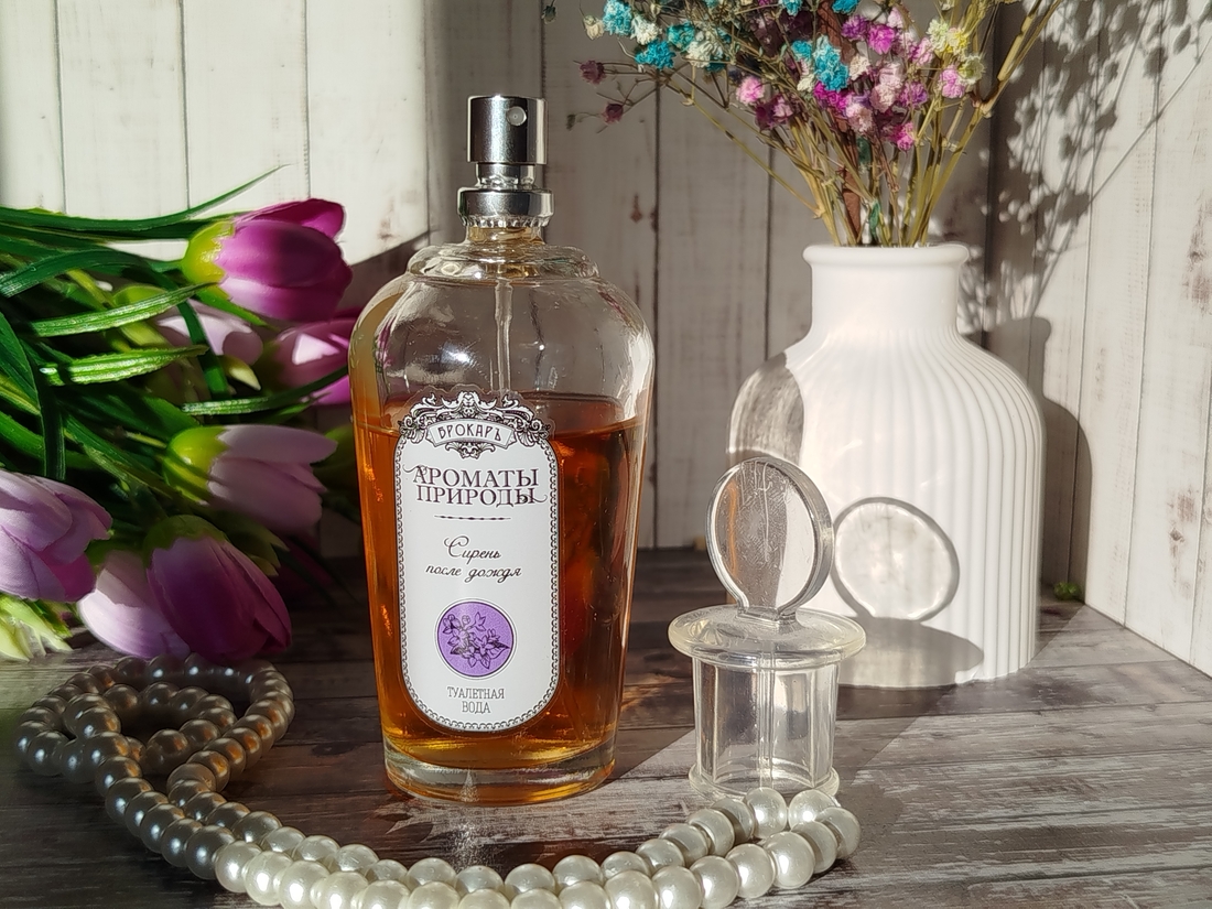 Аромат раскрывается пышным огромным букетом майской сирени. Ассоциации — старый тихий парк, сквер, где вдоль уютных тропинок стоят лавочки под густыми кустами сирени. И вечером там очень приятно провести время, вдыхая густой аромат соцветий фиолетового оттенка.