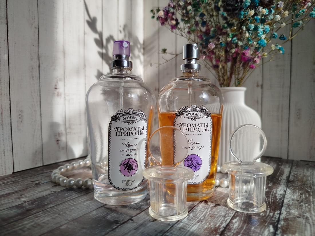 Флаконы в этой коллекции простые и изящные. Оформлены в ретро-стиле. Обьем большой, 100 мл. Крышка из прозрачного пластика сидит не плотно, за нее лучше флакон не поднимать. Этикетки на сегодняшний день слегка поменялись, их сделали проще. У меня пока старые версии.