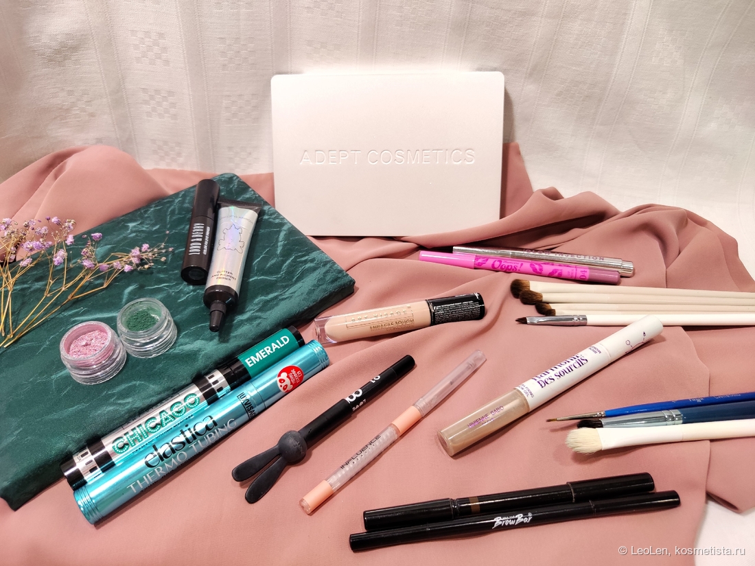 Вся косметика которую я использовала + кисти, за исключением продуктов для лица.