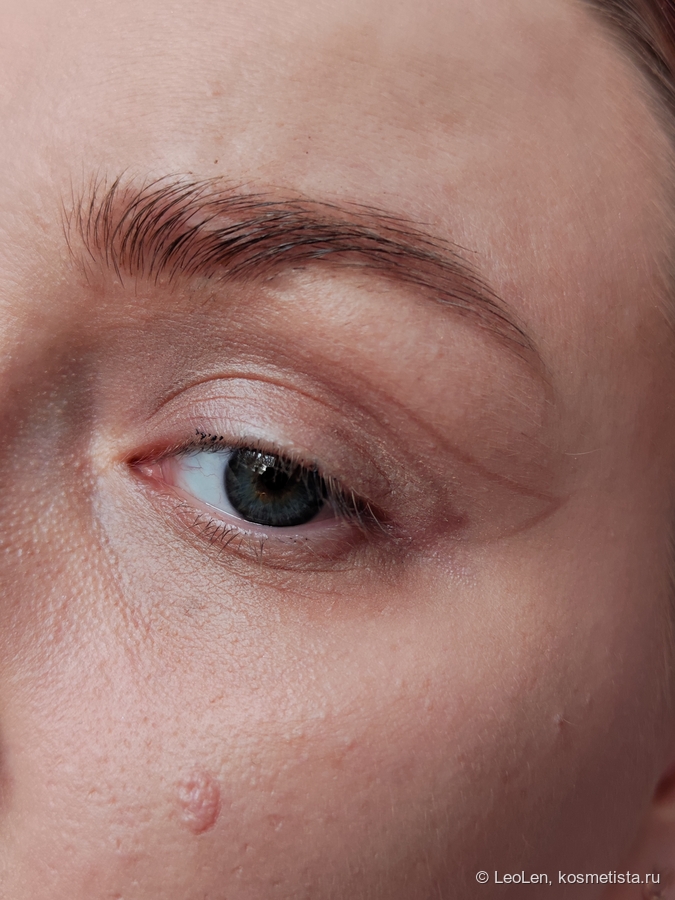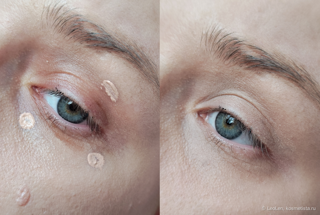 Первым делом, конечно же, наношу консилер. Прихлапывающими движениями пальчиками тушую под глазами, по всему веку. Очень люблю этот консилер. Единственный, что не слишком сильно забивается у меня в складки под глазами, это прям проблема с другими продуктами. Он достаточно плотный, но при этом не сушит, не забивается никуда. Заявлен как светоотражающий, но что-то я сомневаюсь на этот счёт, не замечала.