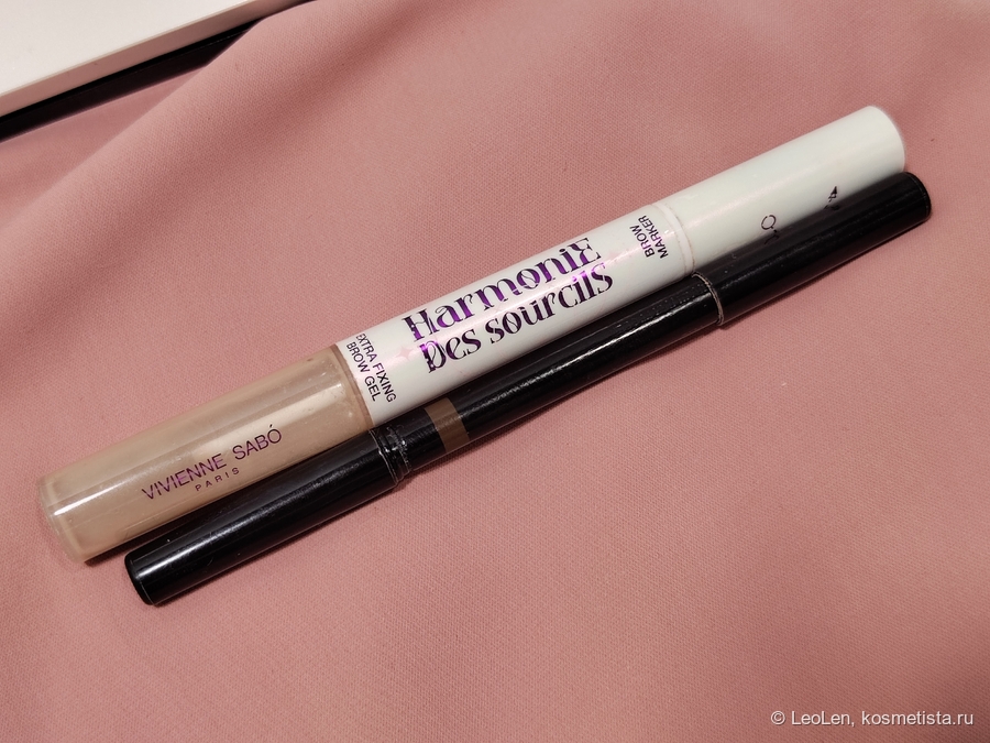Гель для бровей я стараюсь доиспользовать от Vivienne sabo, тоже из древней коллекции. Это двухсторонний продукт, с одной стороны гель для бровей, с другой маркер. Маркер мне не понравился, а вот гелем пользуюсь, он железобетонный.