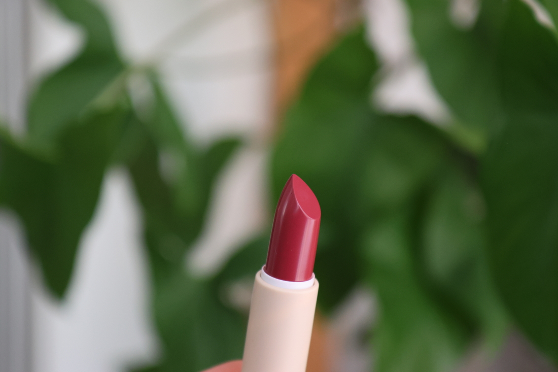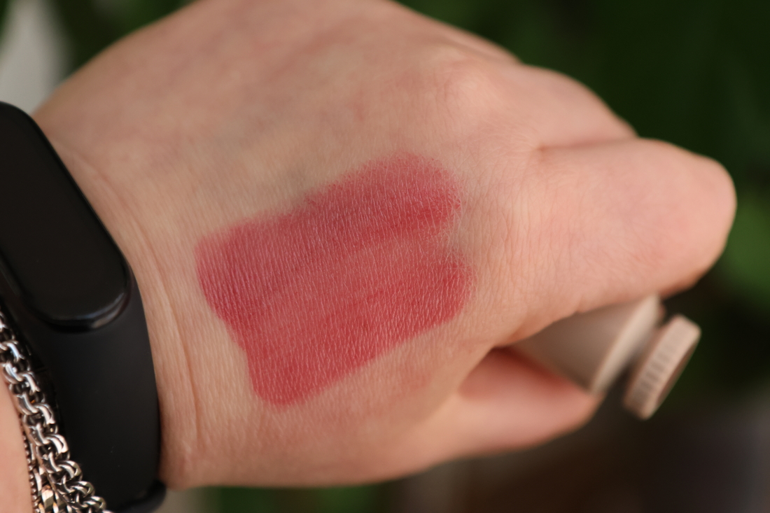 Хотелось что-то прохладно-ягодное на каждый день. Остановилась на этом оттенке. Моя коробочка не такая красивая как у других, обычная. Футляр помады необычный — предпочитаю более стандартные — их удобнее хранить, но проблем не вызывает.