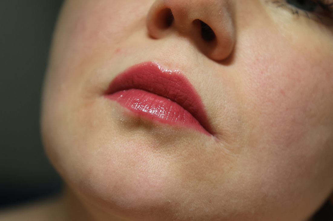Стик плавно выдвигается, имеет удобный срез. Нанесение в один слой полупрозрачное, в два-три поплотнее. Свой оттенок губ перекрывает. При этом лежит не слишком плотно. С контуром проблем нет — как нанесла, так она и осталась. Переживет чай, но лучше всего без вкусняшек. Губы не сушит, не скатывается и прекрасно вписывается в обычный дневной макияж. Шелушения и проблемы на губах не подчеркивает, если они мелкие.