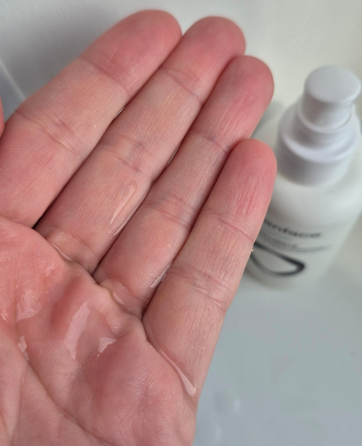 Лосьон бесцветный, жидкий и со слегка ощутимым косметическим ароматом.