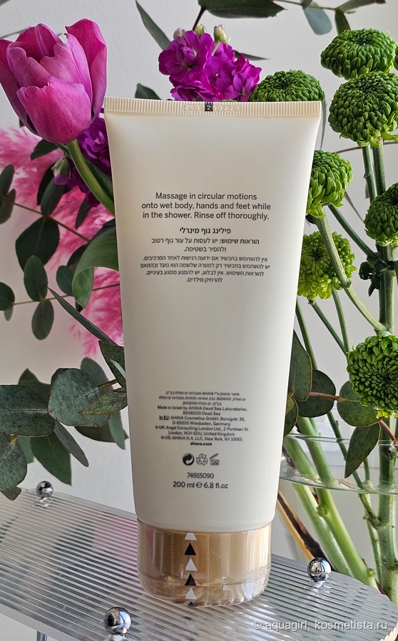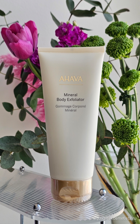 Гоммаж слегка пенится и очень мягко очищает. Он заменяет собой гель для душа, приятно пахнет свежестью и совершенно не сушит. После использования Ahava Mineral Body Exfoliator кожа мягкая и нежная. Никакой масляной плёнки, как после многих скрабов, здесь не остаётся. Поэтому после гоммажа я обязательно наношу увлажняющий крем или молочко в качестве завершающего этапа ухода.