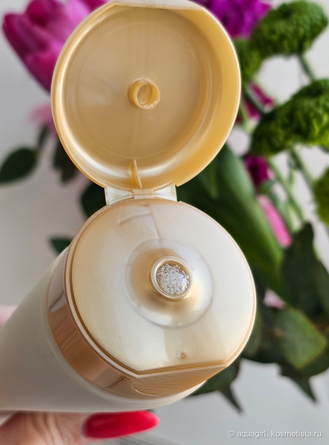 Нужно заметить, что процесс действительно очень деликатный. Не удивительно, что продукт рекомендуется для чувствительной кожи — скрабирующих частиц не так много и они не царапают кожу.