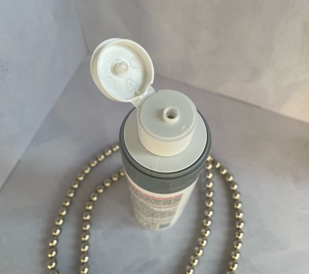 Тоник находится в плотной пластиковой таре красного цвета. Крышка-блестящая, серебряного цвета, на удивление, за несколько месяцев, особо не поцарапалась. Но, к сожалению, подвёл дозатор. В какой-то момент он просто остался в крышке и где-то 20% продукта я пролила.