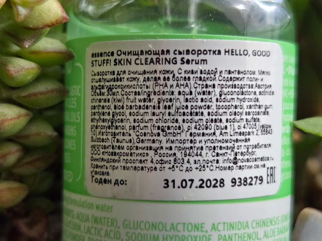 В составе у нее АНА, гидролат киви и успокаивающий пантенол. Состав на 97% состоит из натуральных ингредиентов. На обороте этикетки есть вся необходимая информация.