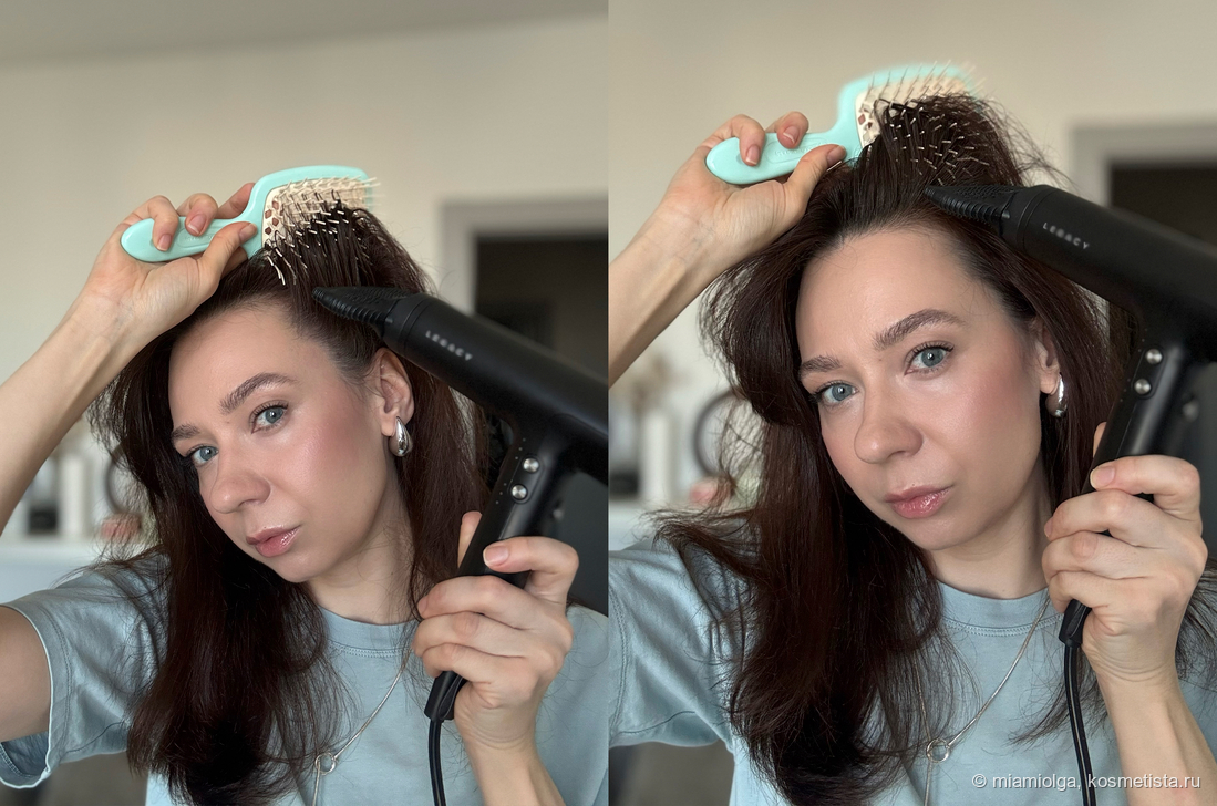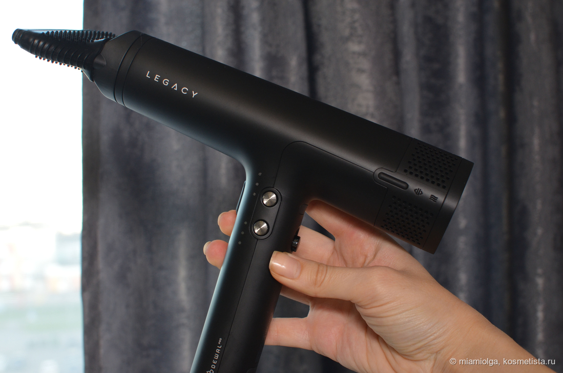Процесс сушки с Legacy, несмотря на меньшую заявленную мощность в 1700W, действительно быстрее, чем с Infini PRO с 2200W! И дело тут в скорости вращения 110000 оборотов в минуту. Это в 4 раза быстрее, чем обычный фен для волос. Я укладываю волосы за 30 минут. Это немало, но чуть ниже покажу на себе и станет понятно, на что уходит время.