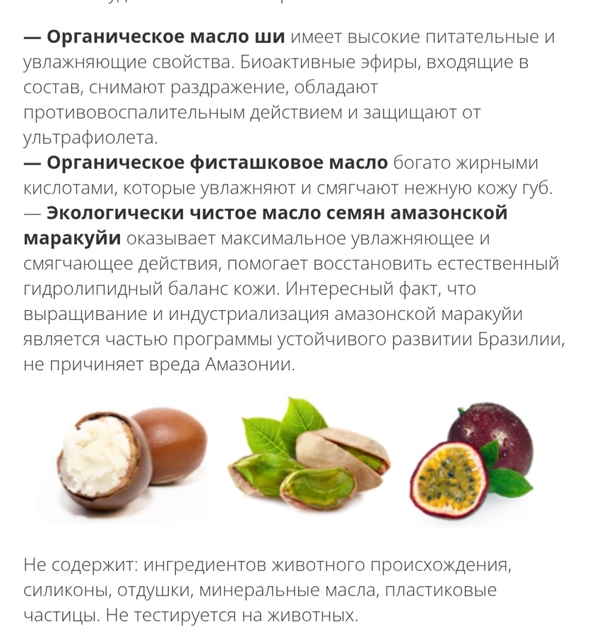 Информация с официального сайта о ухаживающих компонентах в составе: