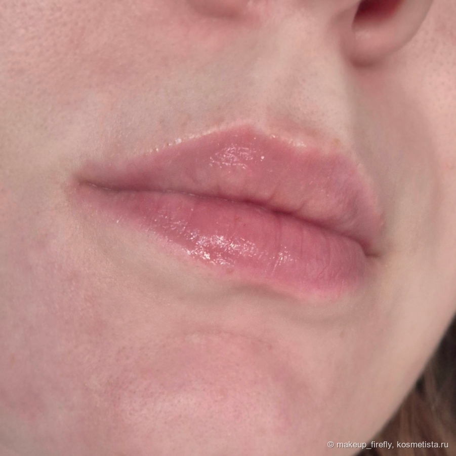 Губам с блеском хорошо. Он не стекает вниз и не затекает в рельеф, не липкий, но волосы на ветру приклеиваются. Последнее время он мне заменил привычный бальзам, от него эффект нравится больше. Можно сочетать с любым карандашом. Есть и другие оттенки, более пигментированные и без шиммера.
