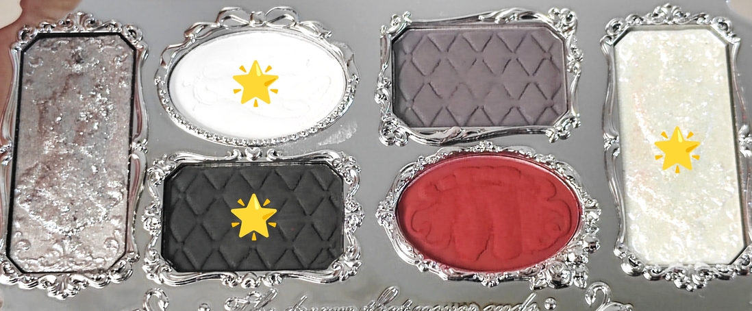Белый — имеет красивый полупрозрачный пигмент, который по цвету похож на летние облака на небе. Он не уходит ни в серый, ни в розовый, и он в этой палетке играет немаловажную роль для растушевки других оттенков.
